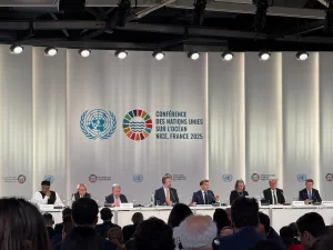 Маалыматка ылайык, иш-чарага дүйнө өлкөлөрүнүн мамлекет жана өкмөт башчылары, эл аралык уюмдардын өкүлдөрү, илимий коомчулук жана жарандык коомдун активисттери катышып, дүйнөлүк океанды коргоо, анын ресурстарын туруктуу пайдалануу, климаттын өзгөрүшүнө каршы күрөшүү боюнча пикир алмашып жатышат.