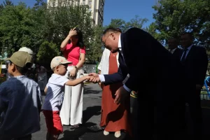 Иш-чаранын соңунда Камчыбек Ташиев балдарга белектерди тапшырып, тарбиячылар менен баарлашты.