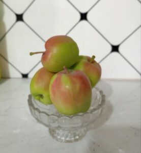 — Алма тигүү ойдо жок жерден болду. Менин раматылык апам Алмабүбү 2005-жылы алма жеп отуруп, үч-төрт данегин гүлдүн челегине сайып коюптур. Үч жылда ал бир карыштай өсүп калды. 2008-жылы апабыз кайтыш болду. Жылдан жылга узарып бара жатканынан энебизден калган көчөт деп үч түп көчөттү сыртка отургузуп койдук. Анча-мынча сугарып жүрүп сырттан дагы эки-үч карыштай өстү. Кийинки жылы кошунабыз Турдаалы аке корук тургузуп, балдары байкабай экөөнү тебелеп коюшуптур. Аман калган бирөөсүн көчө тарапка көчүрүп койдум. Агезде бул алма берет деген ой да жок болчу. Кийин кичине көрк болсун деп алманын тегерегине тоодон жапайы арча, четин, карагат, карагайдын көчөттөрүнөн алып келип тиккем. Ошентип баягы алма өсүп отуруп 2020-жылы аябай гүлдөдү. Аны көргөндөр “Муну кыйыштырбасаң болбойт, өрүк менен же башка мөмө берүүчү дарак менен кыйыштыр” дешти. Кыйыштырганды билбегендиктен, анын үстүнө түшүмүнө да анчейин кызыкпагандыктан кыйыштырган жокмун. Ал жылы гүлдөрү толук күбүлүп түшүп калды. Кийинки жылы дагы гүлдөп беш-алты мөмө байлады. Жетилгенде жеп көрсөк жапайы алма бактардагы алмалардай кычкыл экен. 2022-жылы дагы гүлдөп, анын баарын үшүк уруп кетти. Анан былтыр кайра аябай гүлдөдү. Бир күнү балдар “Ата, алмабыз быйыл жакшы мөмөлөптүр” деп калышты. Ошентип күзүндө баягы алмалар чоң-чоң алма болуп, жакшы бышты. Алтымыштай алма алдык. Жесек даамы кыйла жакшырыптыр. Балам интернетке чыгарып койгон экен айылдыктардын көбү келип алманы көрүп кетип жатышты. Пенде экенбиз, эми алмабыз көбүрөөк байласа экен деп калдык. Быйыл алма этегине чейин жакшы гүлдөдү. Кандай түшүм берери азырынча белгисиз. Үшүк жүрбөсө жакшы эле болор деп турабыз.