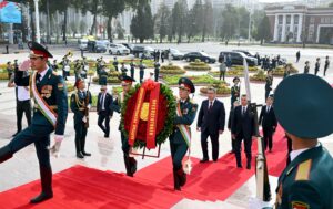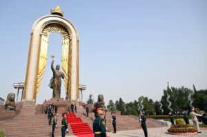 Президент Садыр Жапаров бүгүн, 8-июлда, Тажикстан Республикасына болгон мамлекеттик сапарынын алкагында Дүйшөмбү шаарында тажик мамлекетинин негиздөөчүсү Исмоил Сомонинин эстелигине гүлчамбар койду.