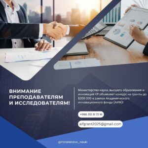 Инновациялык, академиялык жана изилдөөчү долбоорлорду каржылоо максатында, ар кандай дисциплиналар боюнча жогорку окуу жайлардын изилдөөчүлүк потенциалын жогорулатууга багытталган жана университеттер аралык кызматташууну, экономика тармагы менен алаканы бекемдөө үчүн «Жогорку билим берүүдөгү сапат жана инновациялар» долбоорунун алкагында Академиялык инновациялык фонддун (АИФ) гранттарын берүү боюнча биринчи айлампадагы конкурсу жарыяланып жатат.