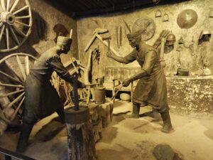 Кол өнөрчүлүк буюмдары сатылган жайлар көргөзмөнү элестетет. Кетмендин эле 80-90 түрү бар. Эгер дүйнөдөгү эң чоң кетменди кайдан табам десеңиз, убара болуп башка жактан издебей, ушунда келиңиз. Кетмендин сабы эле 5 метрби деп койдум. Кетмендин өзү бир метрдей бар.