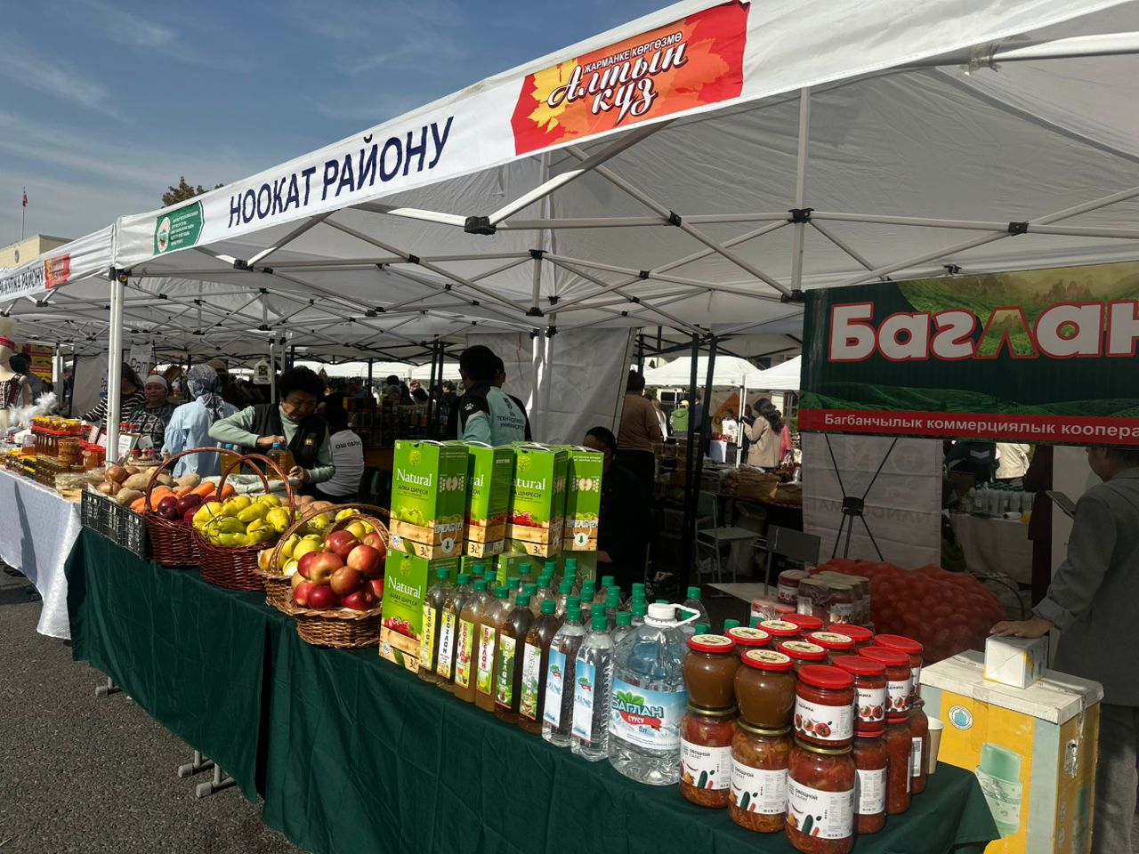 Жарманкеде өлкөнүн бардык дубандарынан — Ош, Нарын, Ысык-Көл, Жалал-Абад, Талас, Баткен жана Чүй аймактарынан келген өндүрүүчүлөр өз продукцияларын сунуштап жатышат. Жарманкеде кадимки азык түлүктөр, сүт, ун жана эт азыктары, жер жемиш, мөмө-чөмө түрлөрү коюлган.