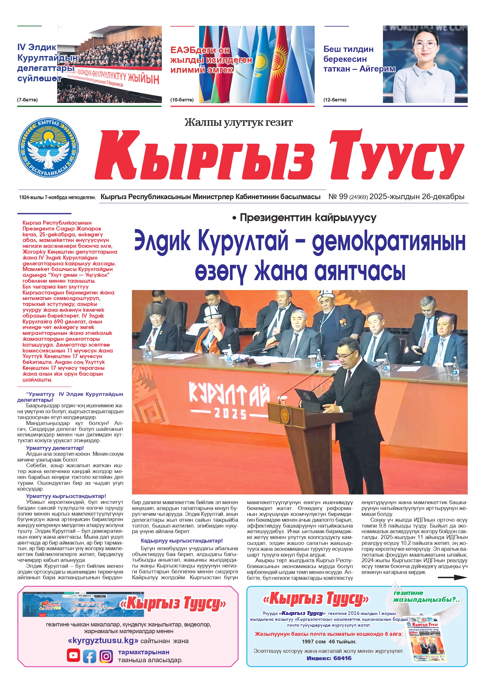 №99 (24969) 2025-жылдын 26-декабры