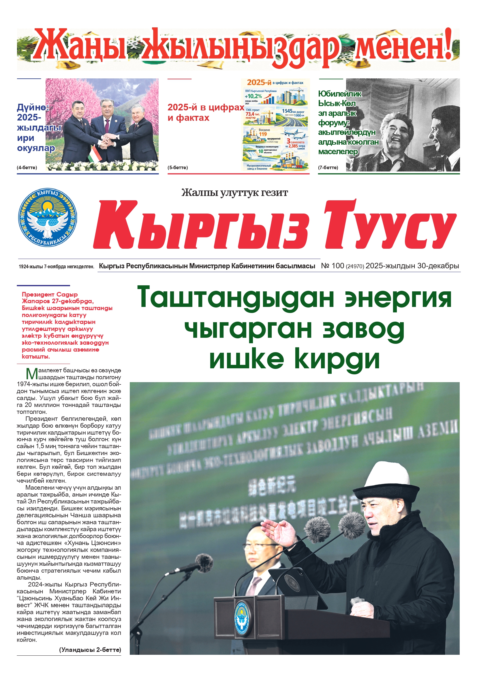 №100 (24970) 2025-жылдын 30-декабры