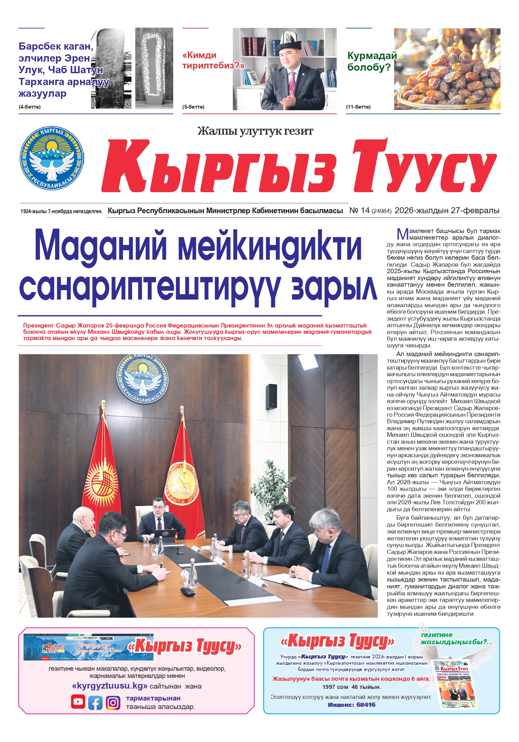 Гезит №14 (24984) 2026-жылдын 27-февралы автор Гулмайрам Рахманбердиева - 27.02.2026 0 3801 Бөлүшүү FacebookXWhatsAppTelegramEmailCopy URL